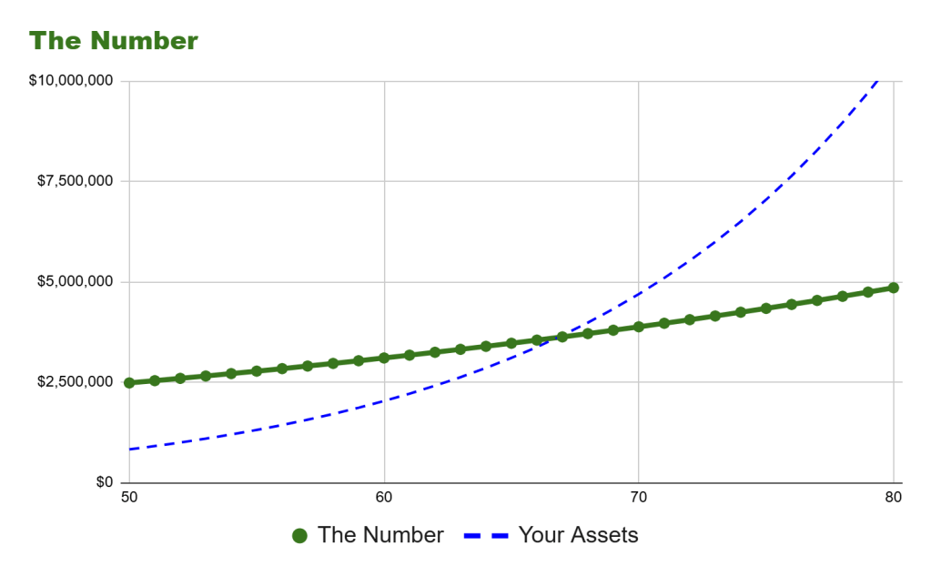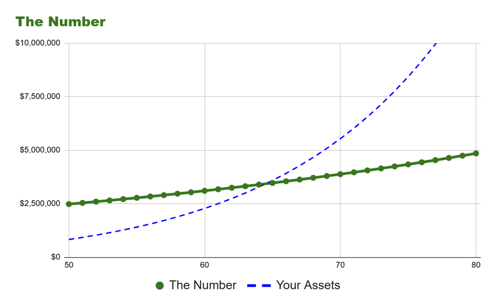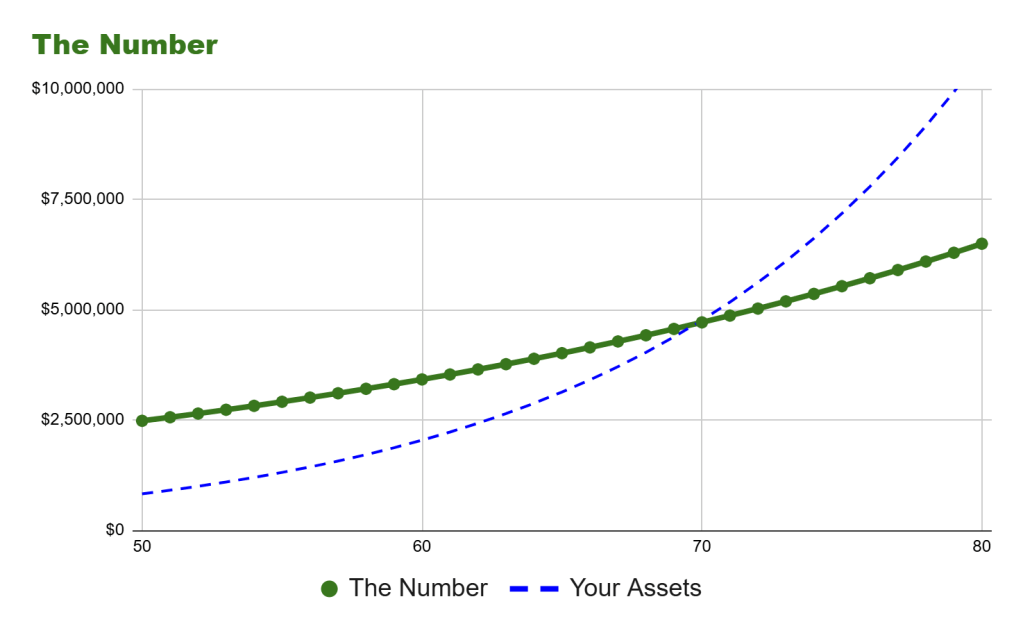 So what is the number and how do we calculate it? The number is the total amount of money we’ll need to be able to consistently tap our portfolio to fund our life. To calculate the number we need to know how much money we’ll need in the future, inflation during the entire period of time and our future tax rate. Yikes. But don’t worry, we’ll do most of the heavy lifting on the math and assumptions for you!